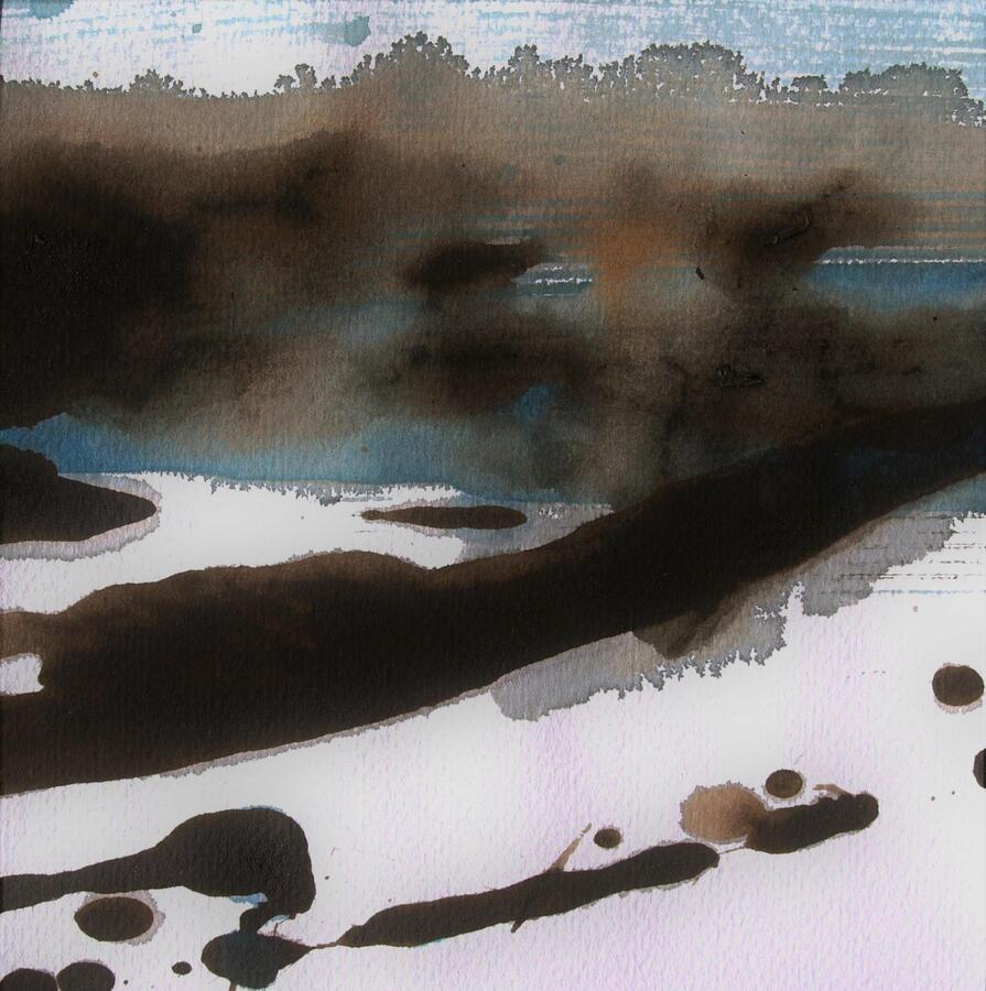 „... Wie kann ich hier auf der Insel sein ohne nicht jedem Tag wieder neu überrascht zu werden. Diese wilde Insel, so explosiv, so bewegt, umwirbelt vom Sand, wenn der stetige Wind vom Pazifik her über die Strände fegt. Die dunklen Abendwolken, die den Regen ankündigen, der aber nicht kommt. Und plötzlich dieses tiefe Blau des Meeres, wenn es sich für eine kurze Zeit beruhigt. Verbringe Stunden am Orange Creek, der sich zum Meer einen Durchbruch verschafft hat. Was für fliessende Farben...“